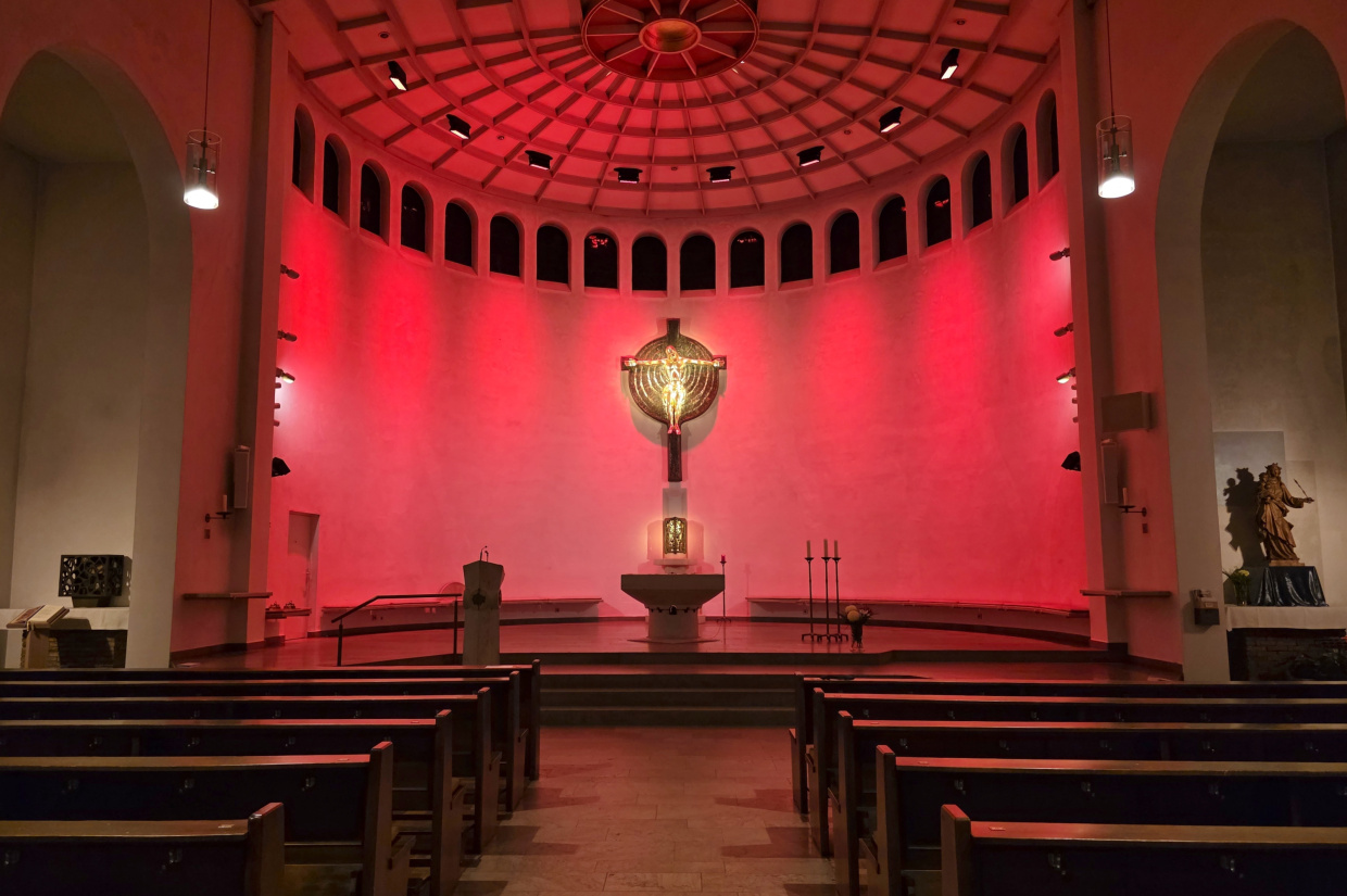 Neben den stündlich stattfindenden Führungen können Sie hier Lichter, Musik und Klänge erleben. Sie können selbst entscheiden, in welcher Farbe der Altarraum erstahlt oder was für eine Musik Sie hören möchten.
